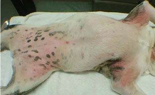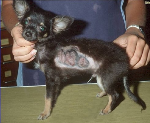 Hypothyreoidie (slecht werkende schildklier): bij een slecht werkende schildklier zie je een wat slomere, dik geworden hond met symmetrisch kale flanken.